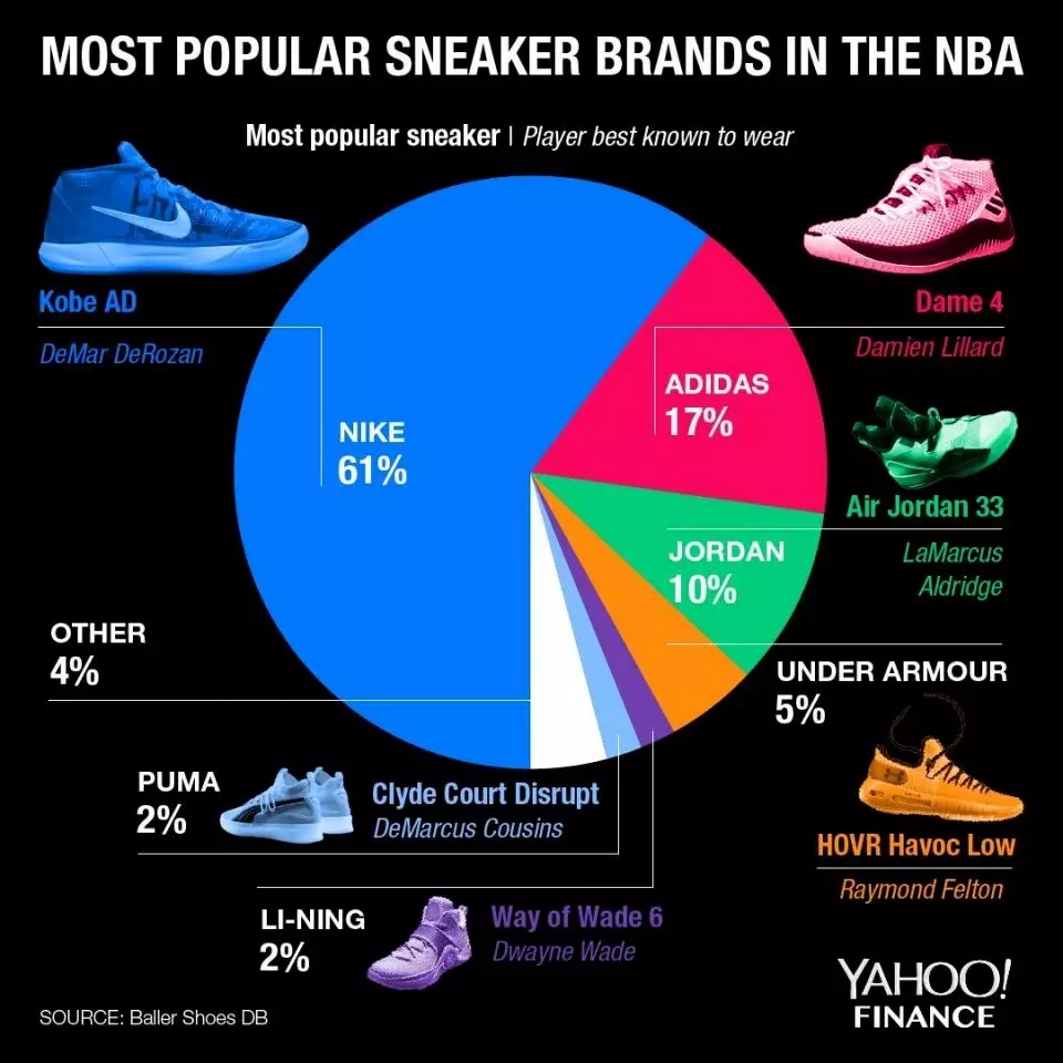(超过70%球员穿着耐克球鞋),