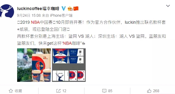 目前瑞幸咖啡已经在回收NBA的纸袋了。