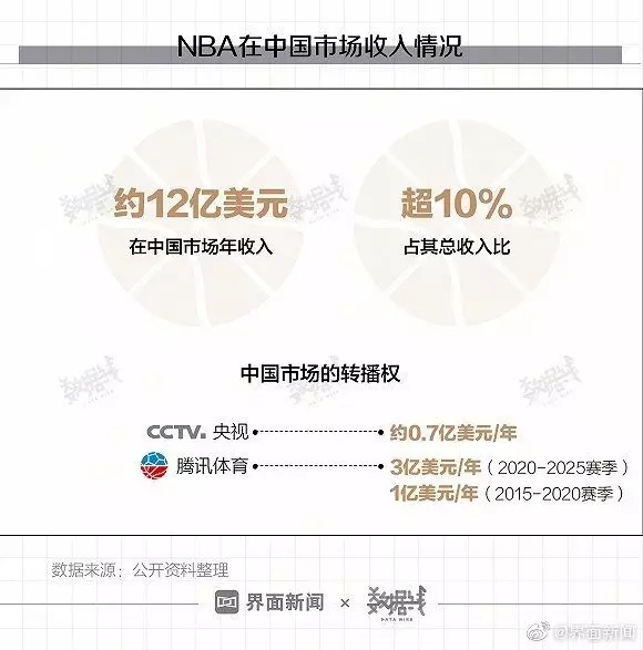 NBA在中国市场每年收入约12亿美元,