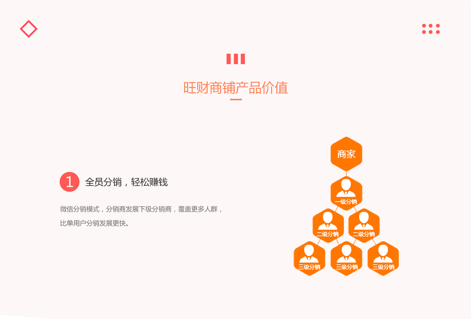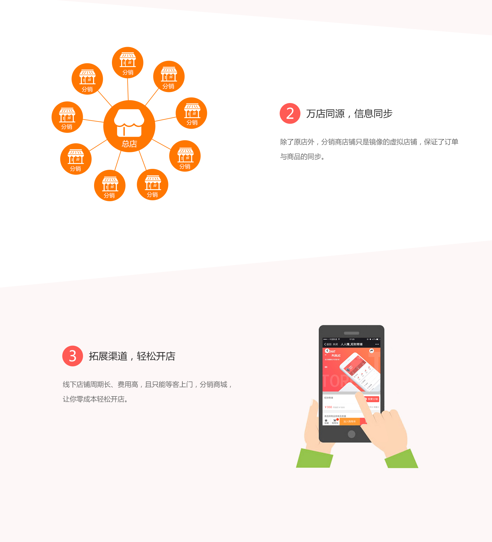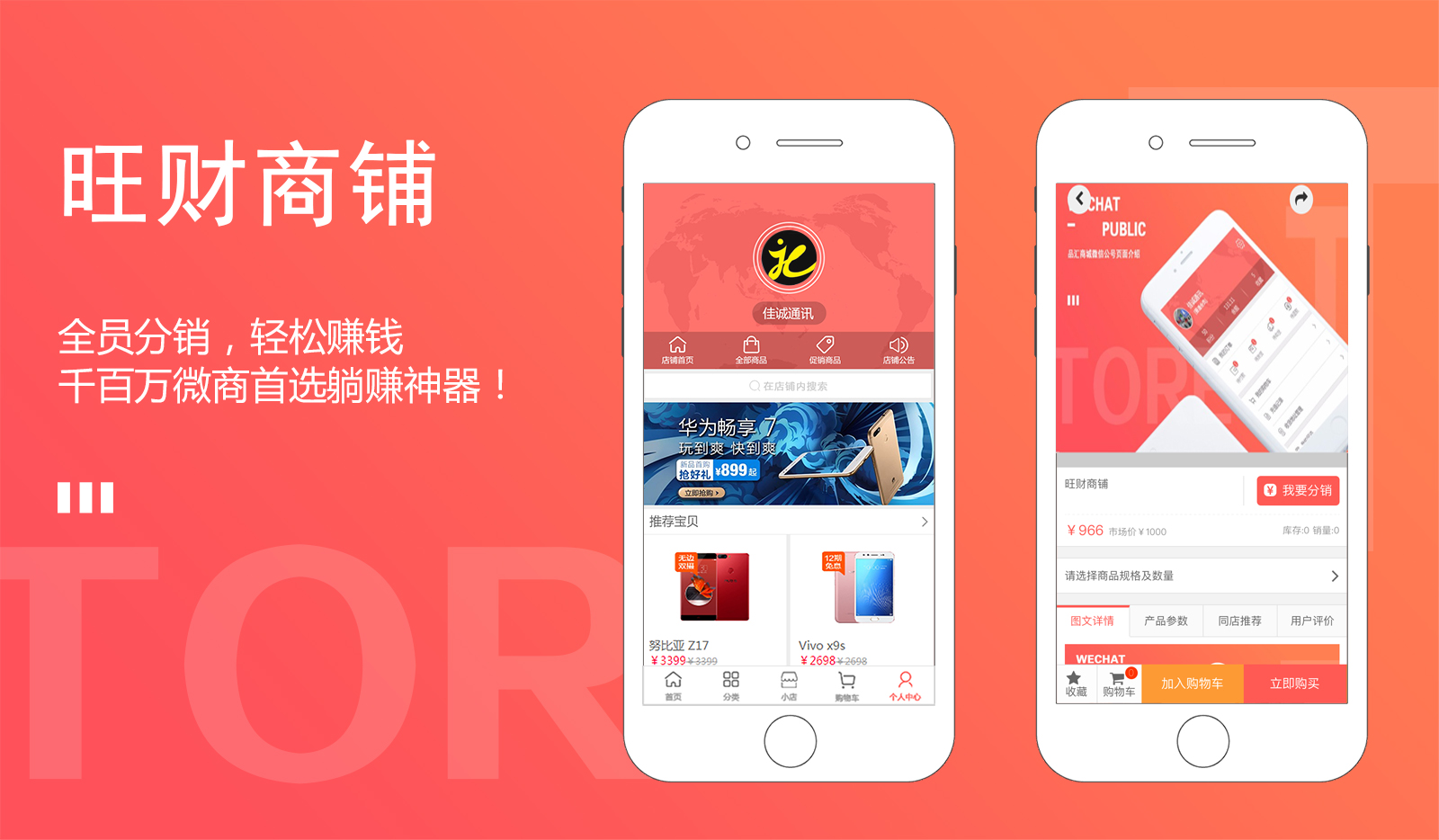 本公司自主研发的分销系统,独家首创!商家可轻松拥有自己的微商城。凭借分享+信任的经济模式,全员开店,以客推客,迅速推动销量增长。零成本将所有客户成为您的推广渠道,实现商城裂变式病毒营销。