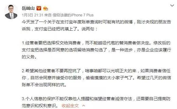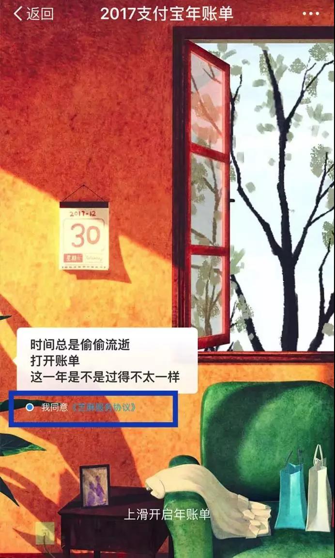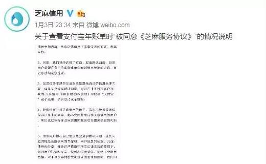 据岳屾山介绍,这个账单的查看和《芝麻服务协议》没有关联性,所以你选择取消同意,依然能够看到年度账单。