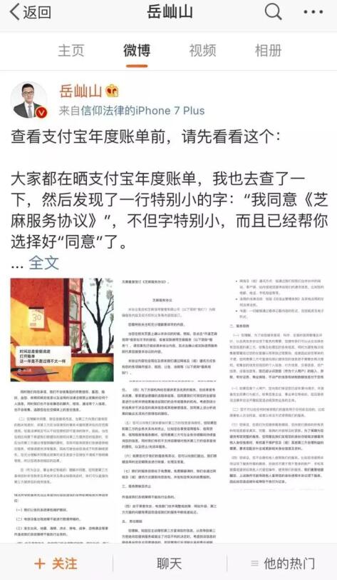 岳成律师事务所合伙人岳屾山在微博上曝出一段话:
