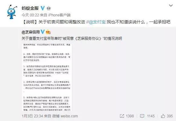 支付宝官方和蚂蚁金服纷纷转发,表示会一起承担。