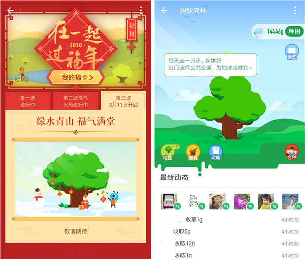 步骤四:浇树领福卡2月11号开始,去蚂蚁森林给好友浇树,就有机会获得福卡。