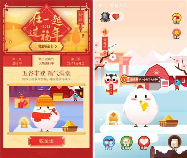 步骤三:捡金蛋得福卡开通蚂蚁庄园,领养小鸡,等它下蛋后即可得福卡。ps:这只圆滚滚的小鸡超能吃。