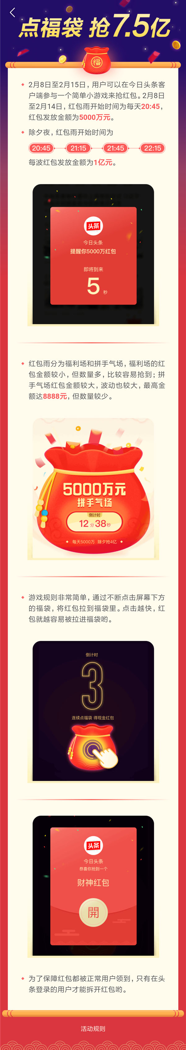步骤四:抢红包雨今天晚上8点45分,5000万红包雨开始抢!规则如下: