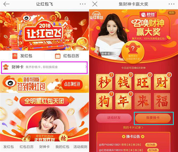 步骤二:集财神卡集齐8张财神卡后,可召唤财神一次,获得现金。