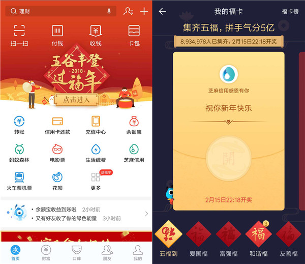 步骤一:进入活动页面打开支付宝首页,点击进入五谷丰登过福年主页。