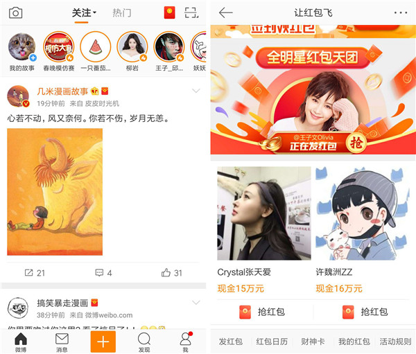 步骤一:进入红包主页打开微博客户端首页,点击右上角红包,进入【让红包飞】主页。