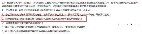 首先,“微信支付用户服务协议”其实早就有过规定了:全部微信支付账户余额连续10天超过人民币5000元或外币等值1000美元的,腾讯会要求核对用户的有效身份证件。”