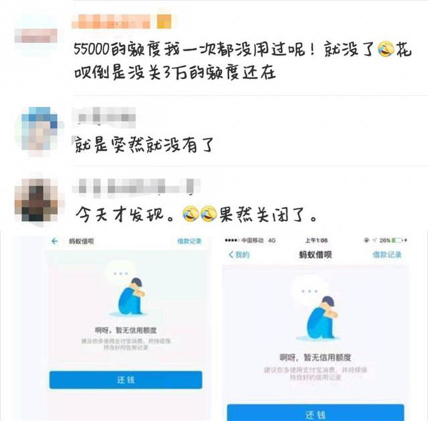 此事件之后,很多支付宝用户突然发现,自己的花呗、借呗遭到降额,严重的甚至被关闭。