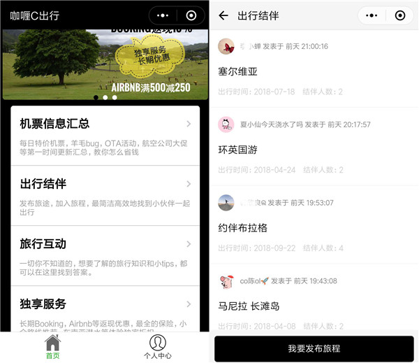 【机票信息汇总】和【出行结伴】