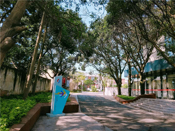 一进大门,两排行道树郁郁葱葱,树荫下微风习习,蝉鸣啾啾,让人倍感惬意。
