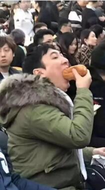 王校长观赛现场吃热狗的偷拍照。