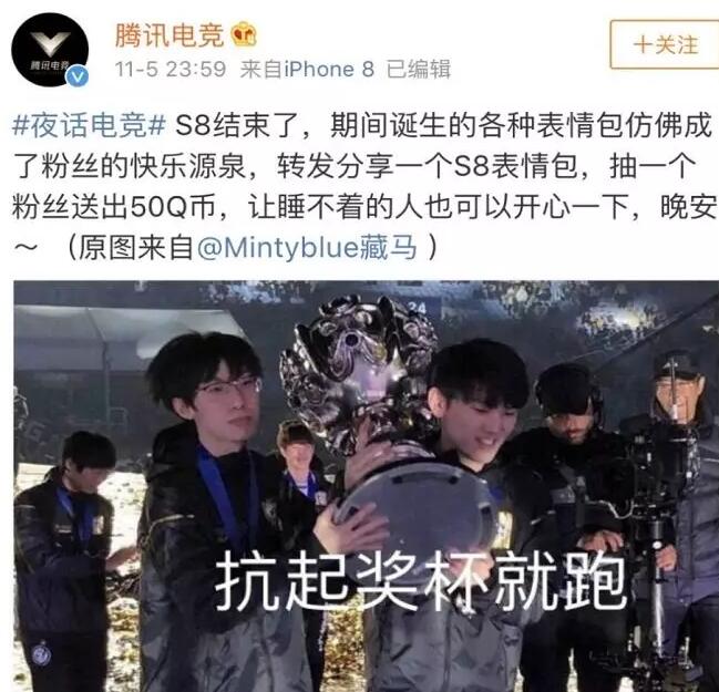 11月5日晚,腾讯电竞策划IG夺冠热门话题的抽奖,用50Q币抽一名,不论是金额还是活动的策划诚意都将粉丝惹恼。